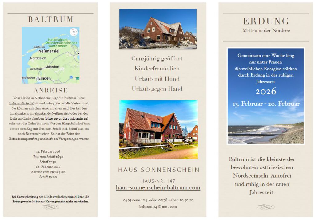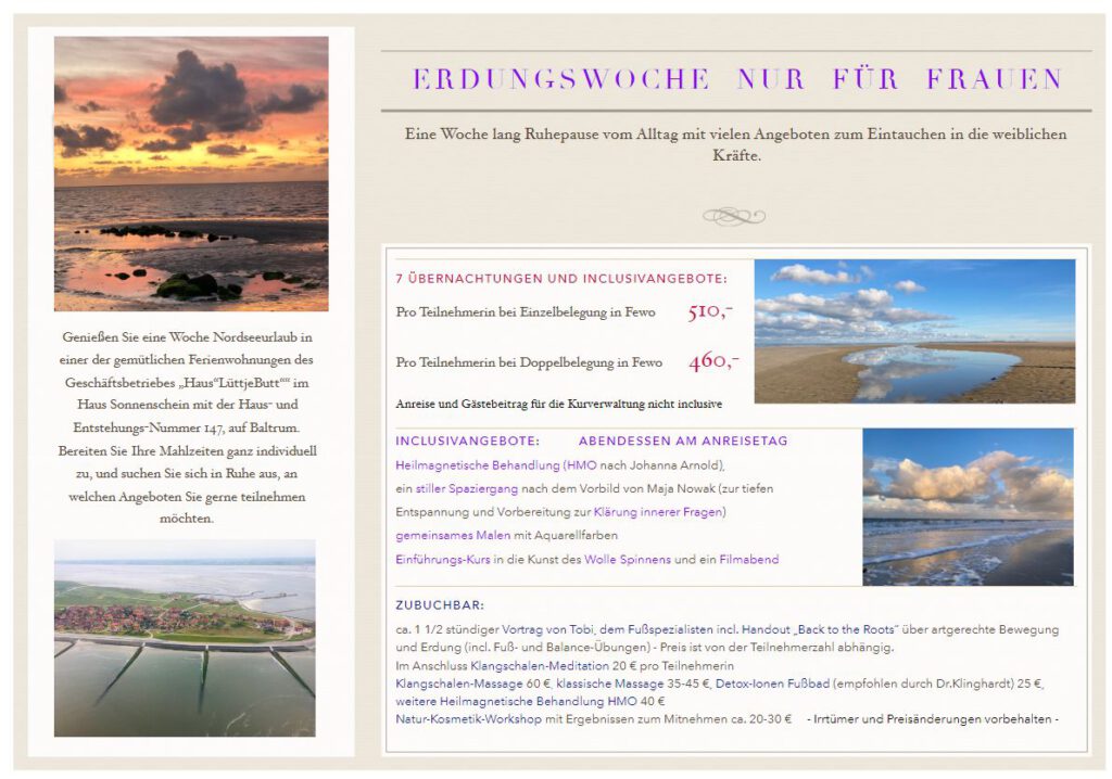 Eine Woche lang Ruhepause vom Altag mit vielen Angeboten zum Eintauchen in die Weiblichen Kräfte. Flyer herunterladen als PDF hier