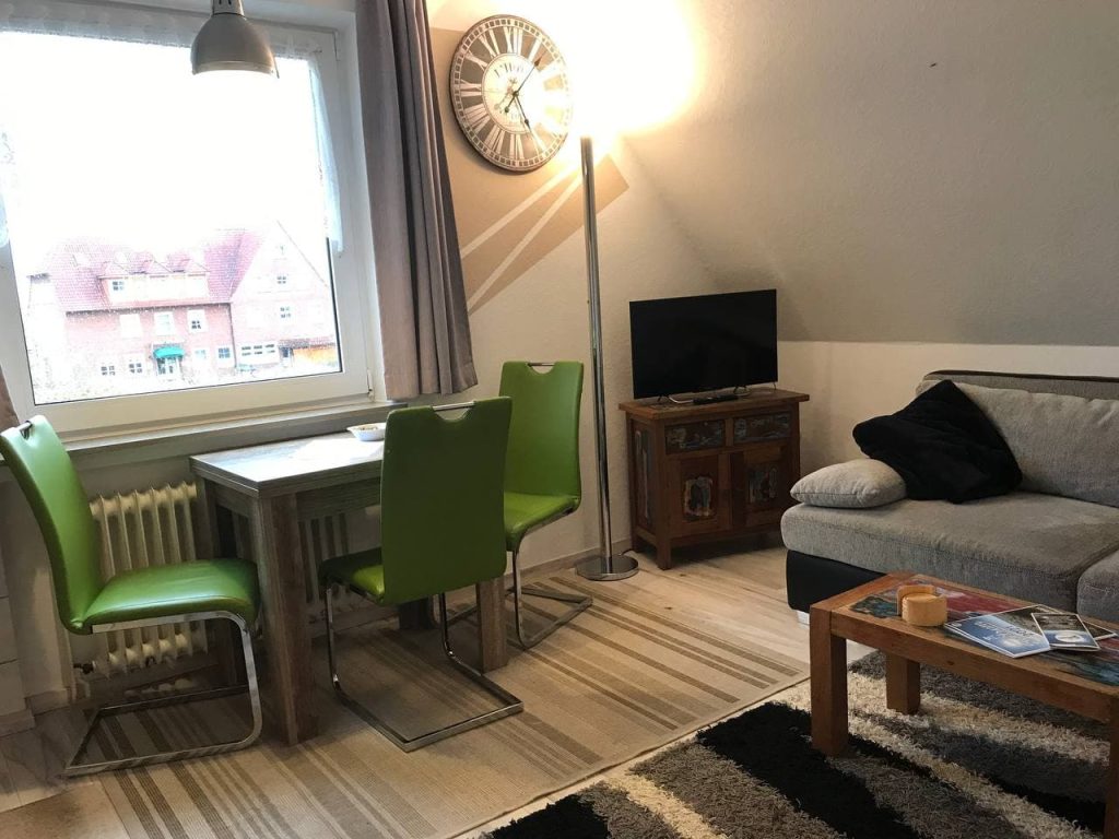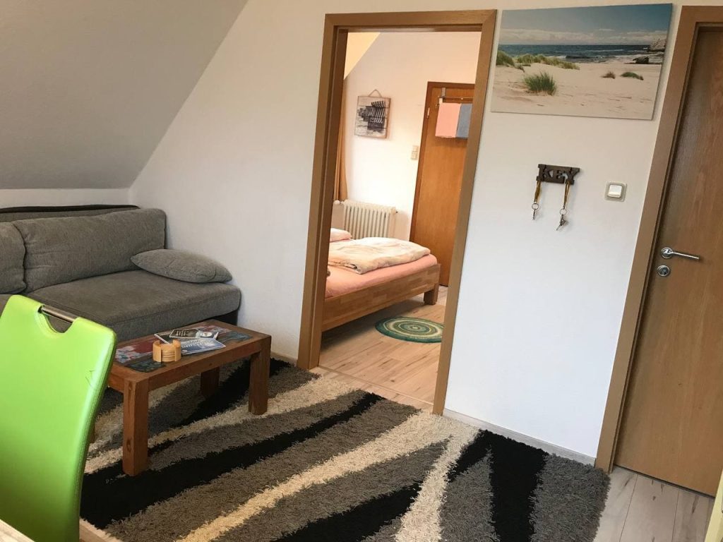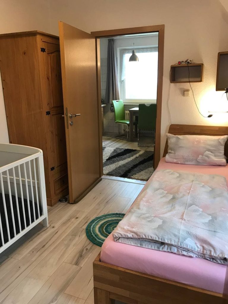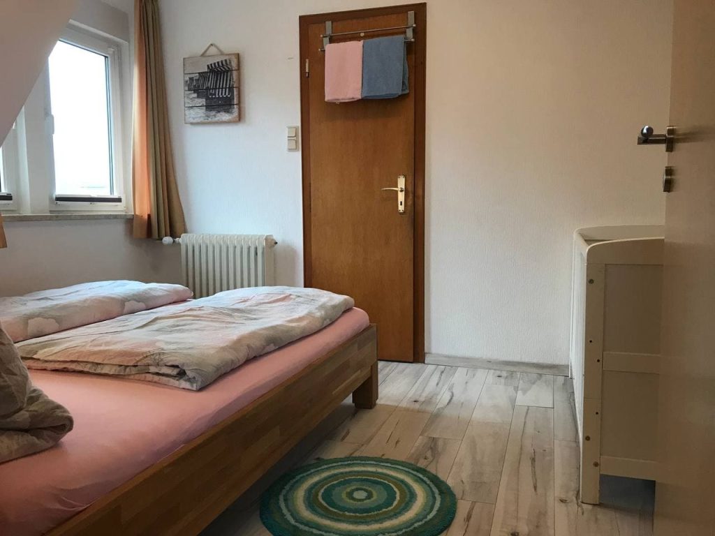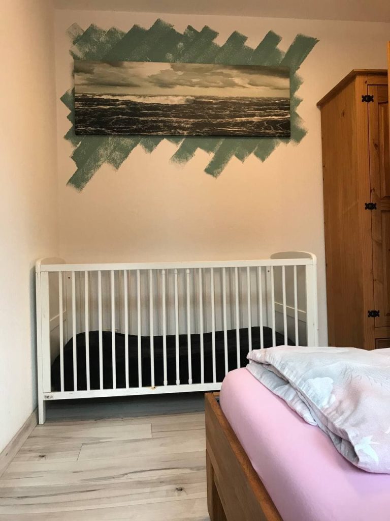 hat ein Schlafzimmer mit einem Doppelbett und einem Kinderreisebett. Im Wohnzimmer kann das Sofa zu einem weiteren Doppelbett umgebaut werden.